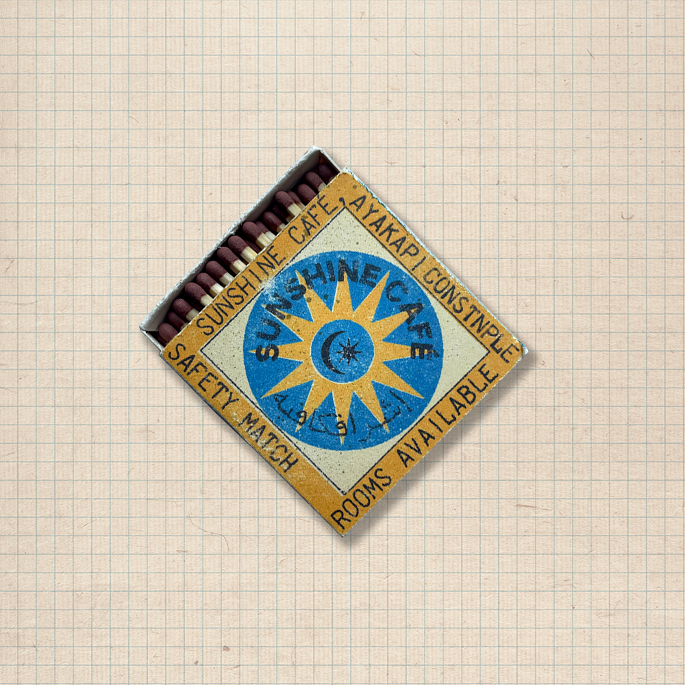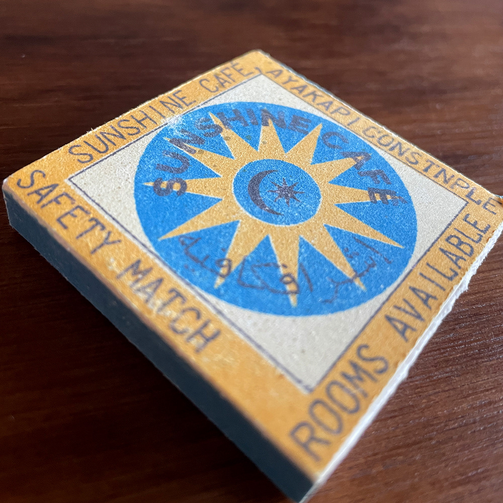 A box of matches acquired by Issac Simpson in the Sunshine Café, Ayakapi, Constantinople 1925